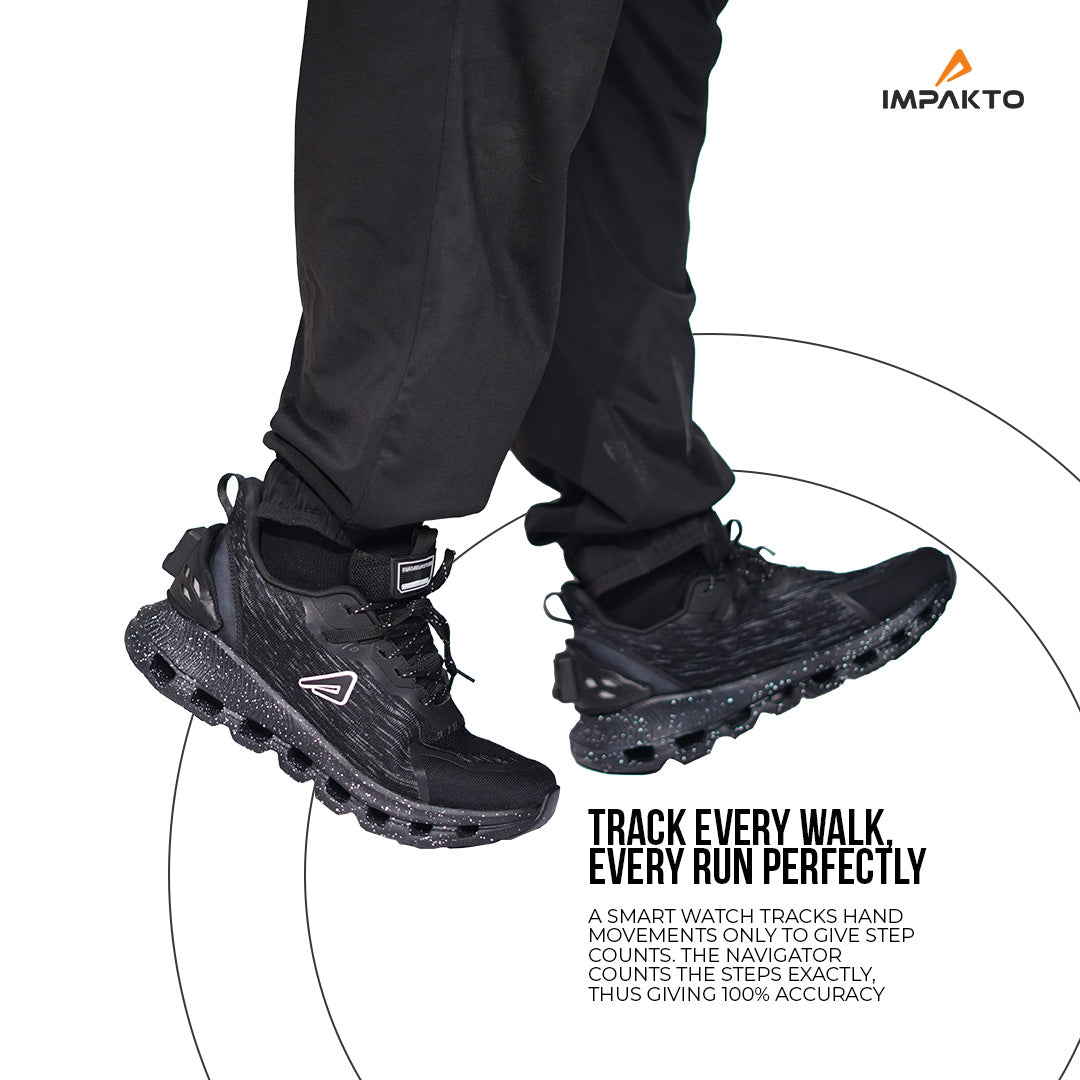 Track every walk and run with precision using Impakto's advanced features. Unlike smartwatches that track hand movements, the Navigator counts your steps accurately, ensuring 100% reliability. Stay on top of your fitness goals effortlessly. With Impakto, you can trust that every step is counted, providing you with the most accurate data to monitor your progress. Whether you're aiming to reach daily step goals or track running distances, Impakto smart shoes deliver unmatched precision.